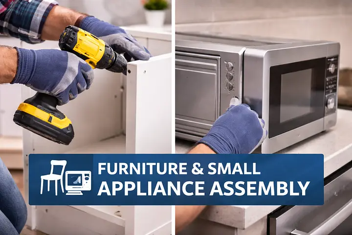 Furniture and small appliance assembly with secure setup, proper alignment, and ready-to-use results done quickly and correctly.